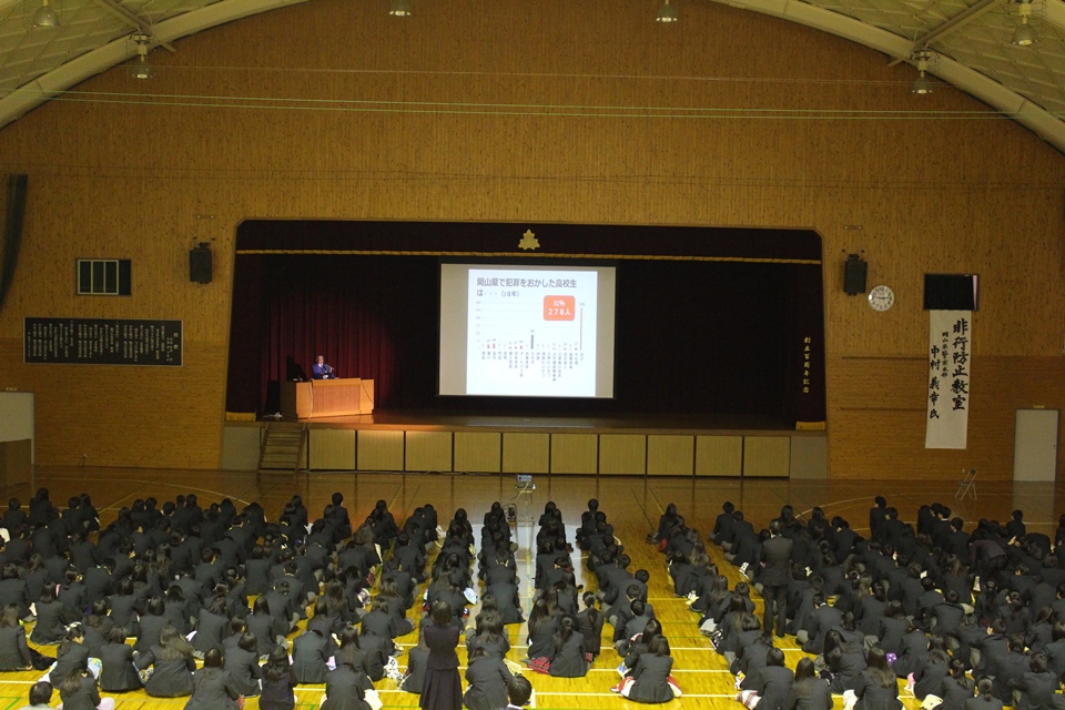 11月29日(水) 本校に岡山県警察本部非行防止教室専門員中村義幸先生をお招きし、ご講演をいただきました。