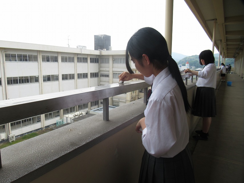 学校周辺のゴミ拾いや校内での清掃活動など、鴨方高校の美化に努めました。