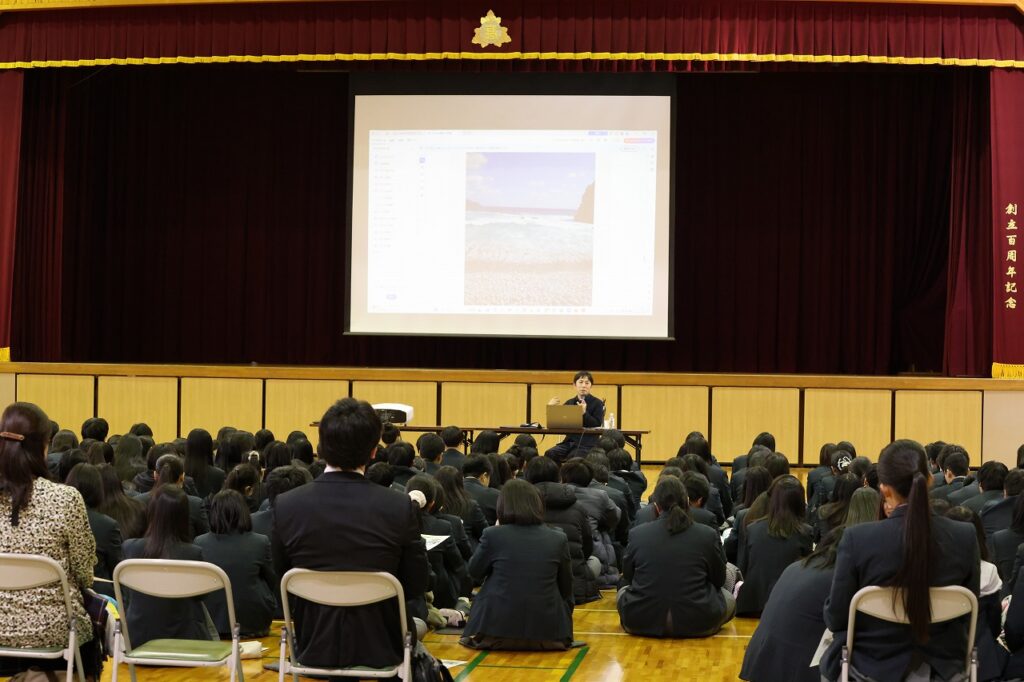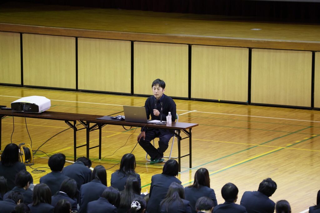 11月26日(水)、5.6限を利用して人権教育講演会を行いました。当日は、講師役として一般社団法人みんなのお家ハルハウス 井上正貴様をお迎えし、「生き方を見つけるまで」というタイトルでの講演を行っていただきました。