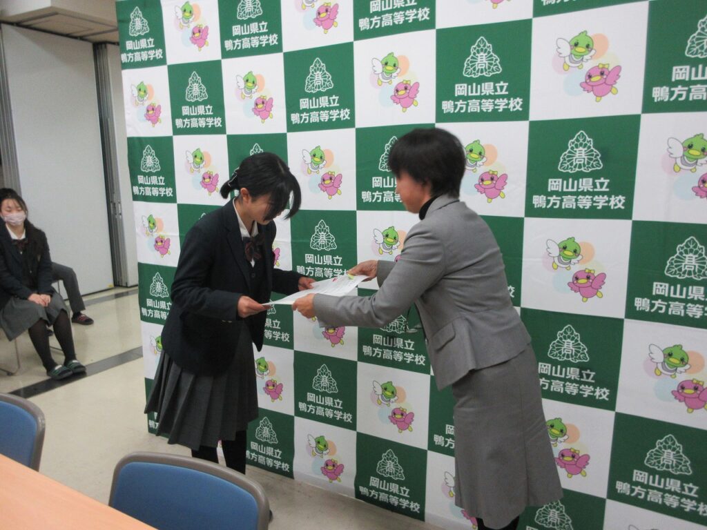 2学期 表彰伝達 2025.12.25学校生活, 学校行事 12月24日(水)に表彰伝達がオンラインで行われました。2学期も多くの個人・団体が様々な分野で表彰を受けました。3学期も鴨方高校生の活躍を期待しています。 共有:FacebookX