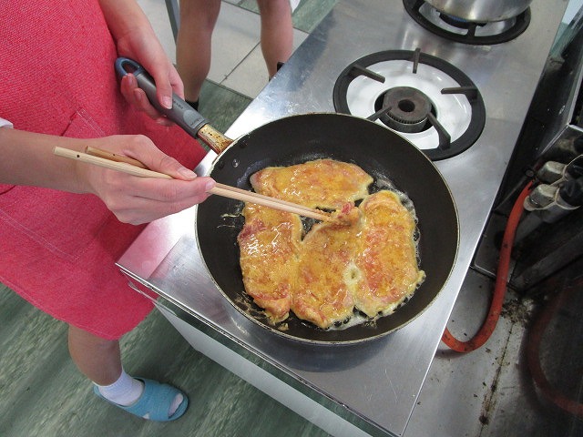 豚肉の筋切りなどの下ごしらえや火加減に気を付けながら、協力して調理を進めました。