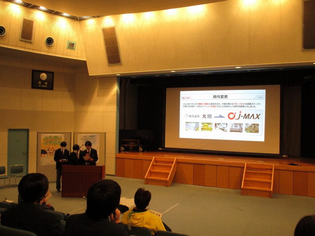 J-MAX、浅口特産果樹研究会、スズキ麺工、シバセ工業、山下石工所、襟立制帽所、合同会社OENへ取材に行った班が発表を行いました。(順不同、敬称略)