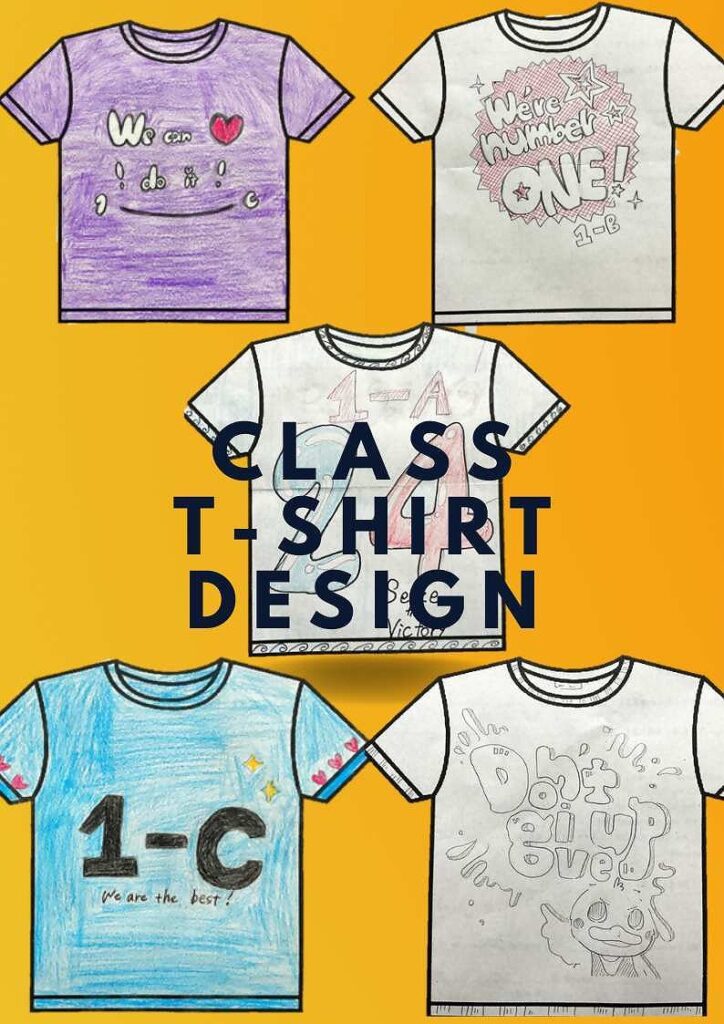 1年生「英語コミュニケーションⅠ」の授業で、自分のお気に入りの英語のフレーズを入れたクラスTシャツをデザインしました。また、そのTシャツについて説明をするパフォーマンステストを実施しました。Tシャツに記載するのに適切で、コンパクトな激励の言葉を選ぶ生徒が多かったです。